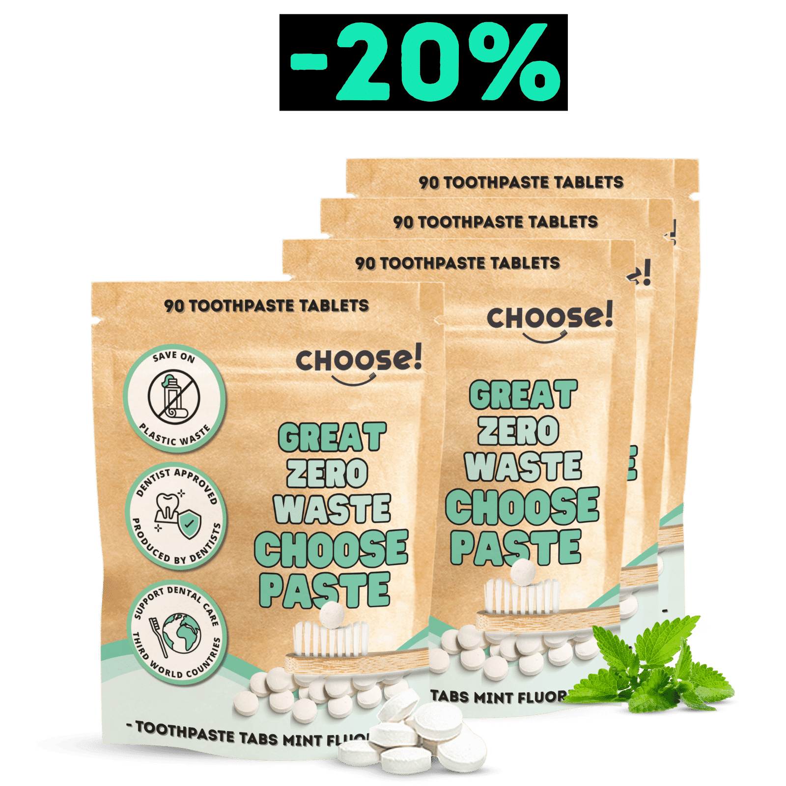Start met onze uitstekende tandpasta uit een tabletje met frisse muntsmaak! Kauw, poets en voel het opschuimen naar tandpasta zoals je gewend bent maar dan (micro) plasticvrij, 100% vegan, dierproefvrij en op een sociale manier!